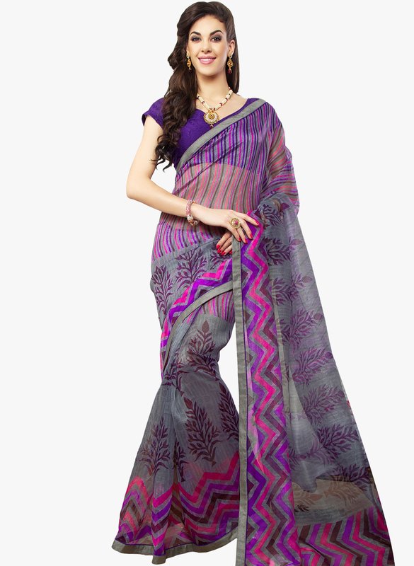 Jabong has Hypnotex Grey Printed Saree for Rs.2,260.00 with Free Shipping