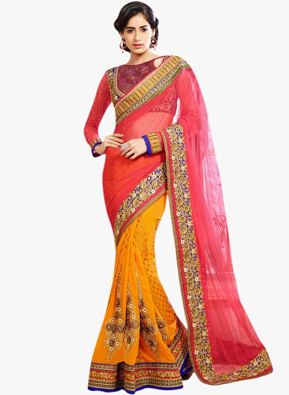 Hypnotex Orange Embroidered Saree