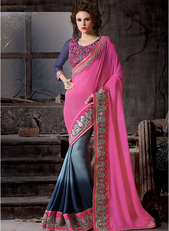 Jabong has Hypnotex Pink Embroidered Saree for Rs.13,420.00 with Free Shipping