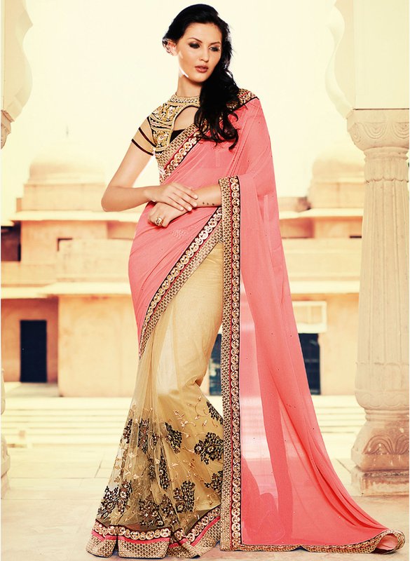 Jabong has Hypnotex Pink Embroidered Saree for Rs.12,100.00 with Free Shipping