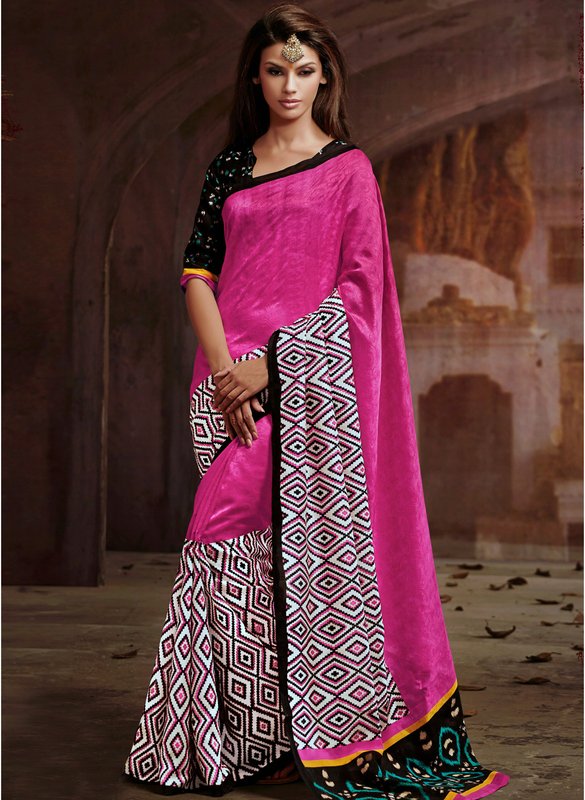 Jabong has Hypnotex Pink Printed Saree for Rs.4,230.00 - Rs.3,385.00 (Instant Discount) = Rs.845.00 with Free Shipping