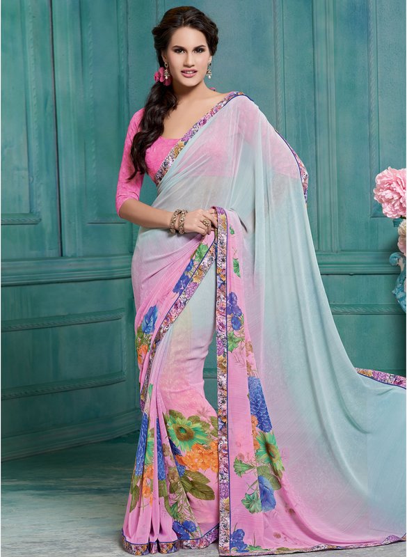 Hypnotex Pink Printed Saree