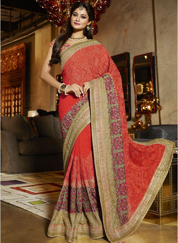 Jabong has Hypnotex Red Embroidered Saree for Rs.28,620.00 with Free Shipping
