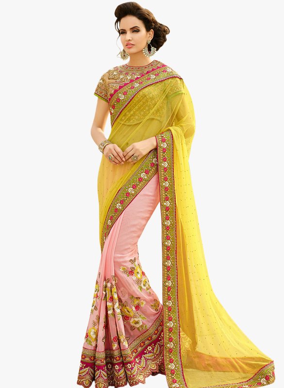 Jabong has Hypnotex Yellow Embroidered Saree for Rs.18,939.00 with Free Shipping
