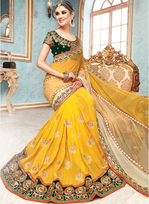 Jabong has Hypnotex Yellow Embroidered Saree for Rs.17,500.00 - Rs.13,000.00 (Instant Discount) = Rs.4,500.00 with Free Shipping