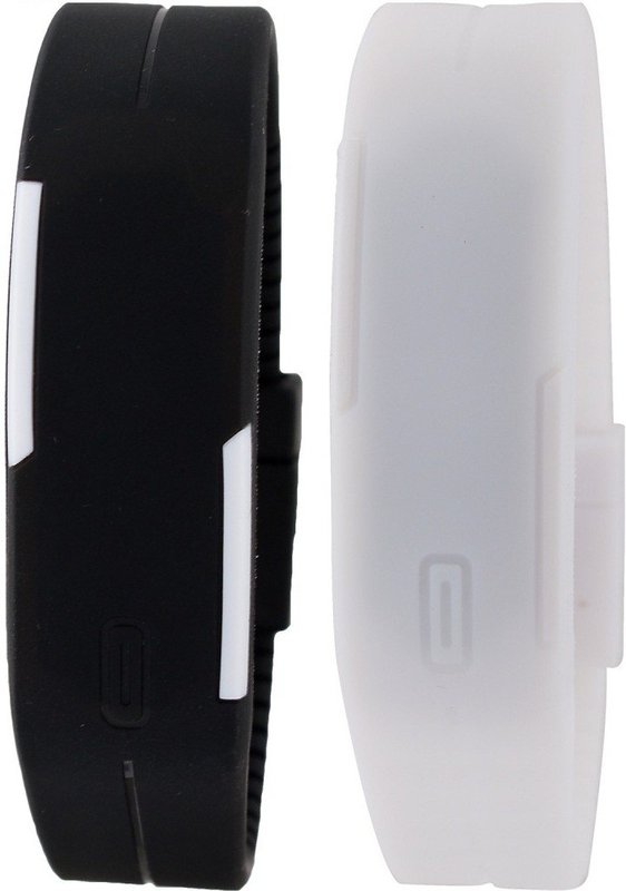 iDigi Unisex Set of 2 Black & White LED Digital Watch - For Men, Boys, Women
