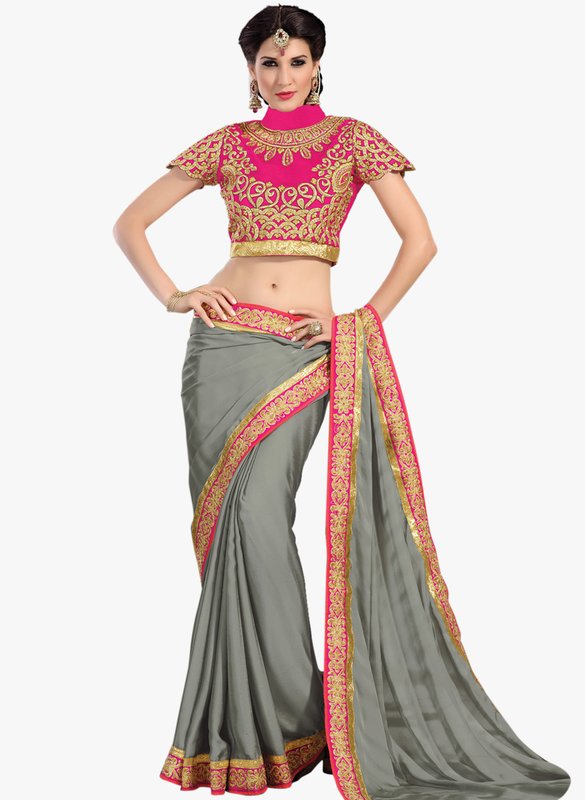 Jabong has Inddus Grey Embroidered Saree for Rs.5,300.00 - Rs.2,650.00 (Instant Discount) = Rs.2,650.00 with Free Shipping