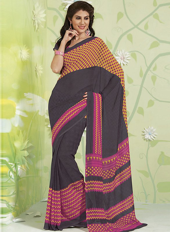 Inddus Grey Printed Saree