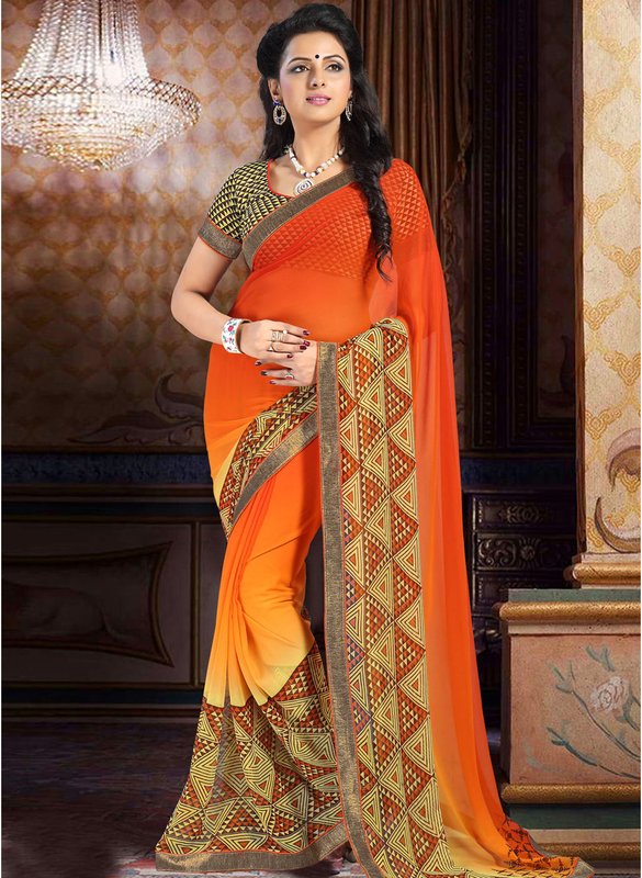 Jabong has Inddus Orange Printed Saree for Rs.1,850.00 - Rs.750.00 (Instant Discount) = Rs.1,100.00 with Free Shipping