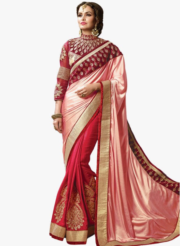 Inddus Pink Embroidered Saree