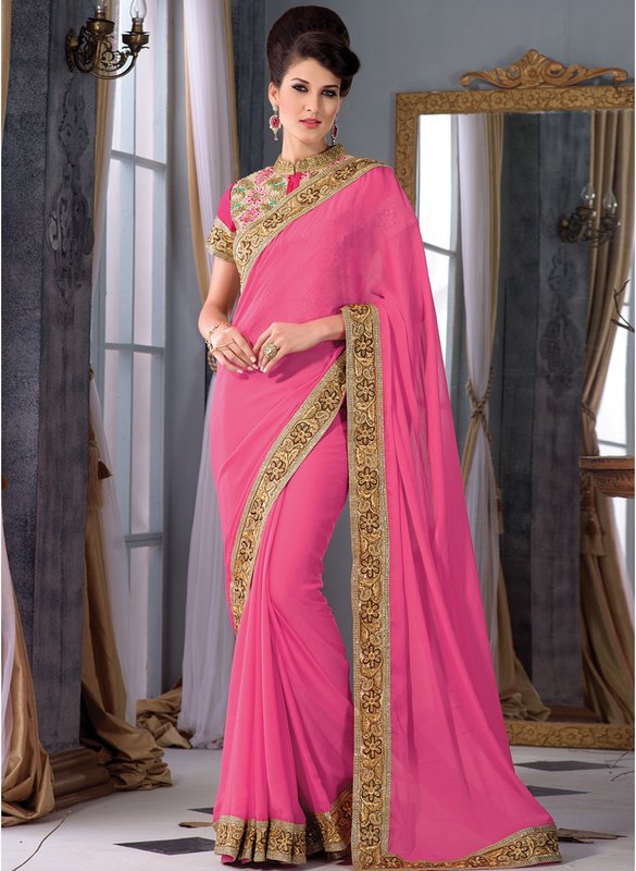 Jabong has Inddus Pink Embroidered Saree for Rs.5,650.00 - Rs.2,825.00 (Instant Discount) = Rs.2,825.00 with Free Shipping