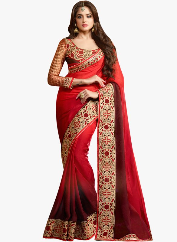 Inddus Red Embroidered Saree