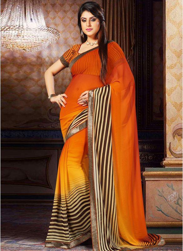 Jabong has Inddus Rust Striped Saree for Rs.1,850.00 - Rs.750.00 (Instant Discount) = Rs.1,100.00 with Free Shipping