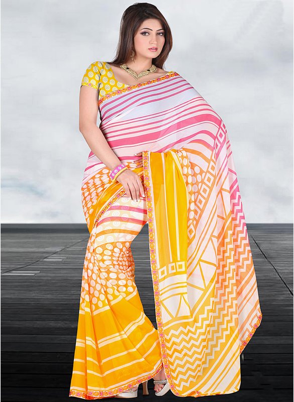 Jabong has Inddus Yellow Printed Saree for Rs.1,725.00 - Rs.862.00 (Instant Discount) = Rs.863.00 with Free Shipping