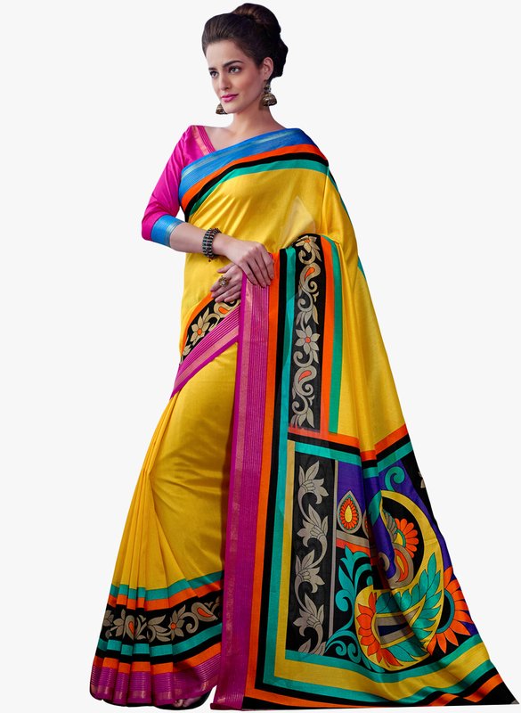 Jabong has Inddus Yellow Printed Saree for Rs.1,575.00 - Rs.475.00 (Instant Discount) = Rs.1,100.00 with Free Shipping
