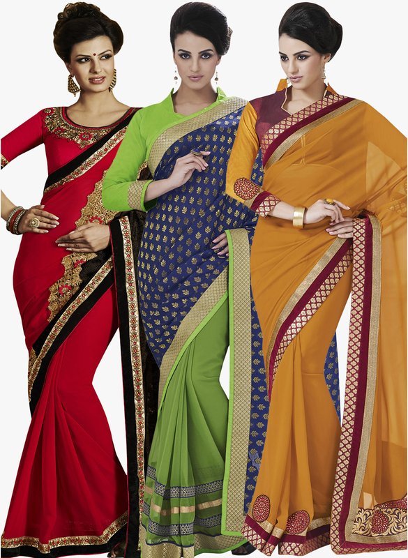 Jabong has Indian Women By Bahubali Pack Of 3 Multicoloured Colored Embroidered Saree for Rs.5,974.00 with Free Shipping