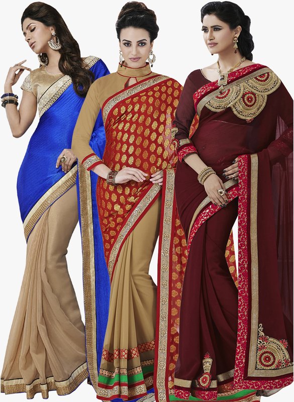 Jabong has Indian Women By Bahubali Pack Of 3 Multicoloured Colored Embroidered Saree for Rs.5,974.00 with Free Shipping
