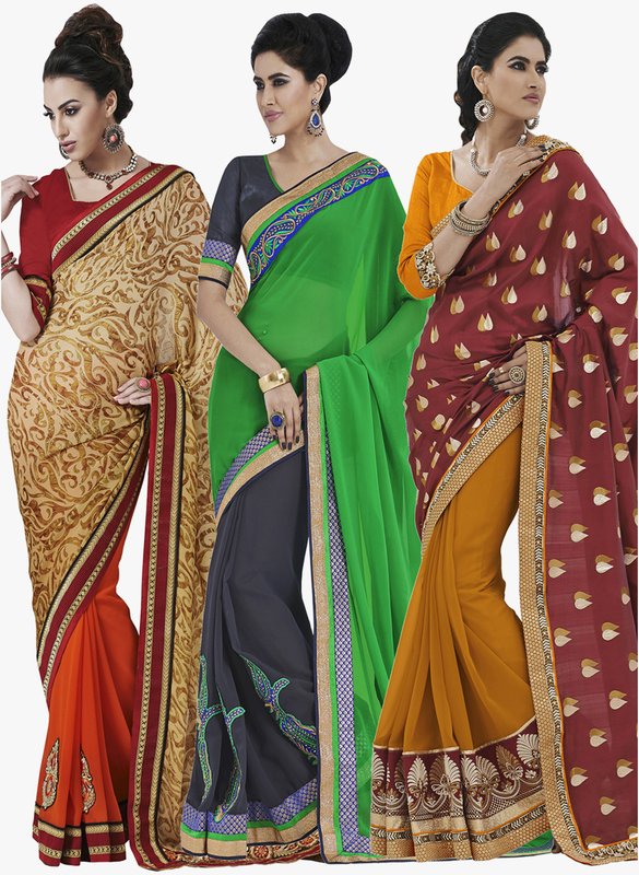 Jabong has Indian Women By Bahubali Pack Of 3 Multicoloured Embroidered Sarees for Rs.5,455.00 with Free Shipping