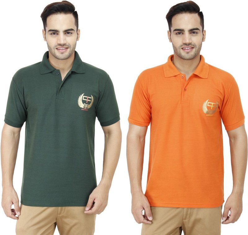 inkdice Solid Men's Polo Neck Multicolor T-Shirt(Pack of 2)