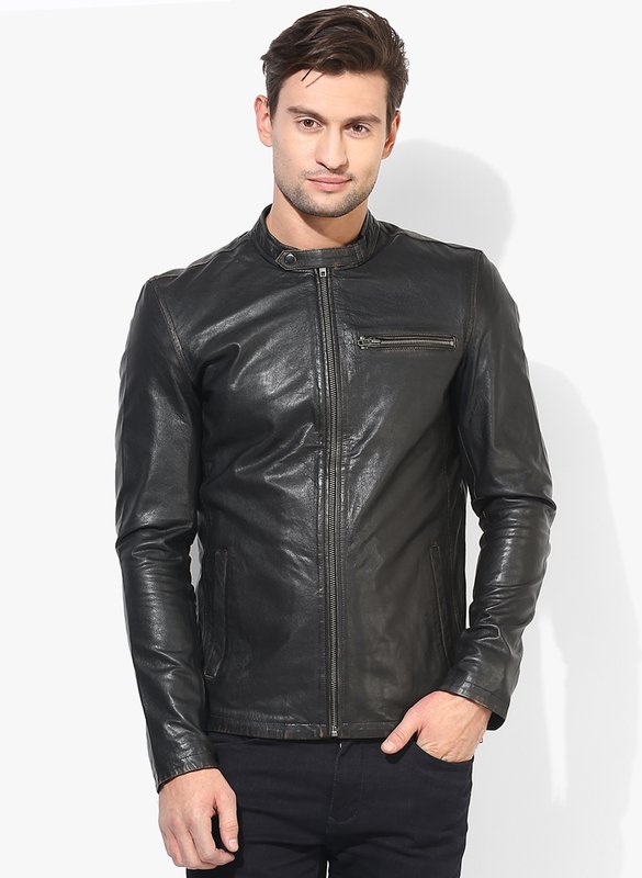 Jabong has Jack & Jones Black Solid Regular Fit Leather Jacket for Rs.12,995.00 with Free Shipping