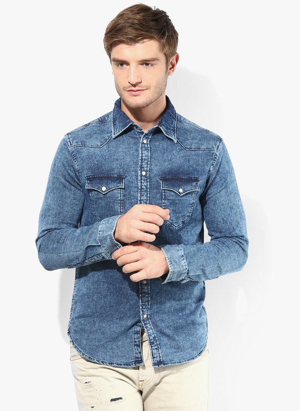 Jabong has Jack & Jones Blue Solid Slim Fit Casual Shirt for Rs.2,995.00 with Free Shipping