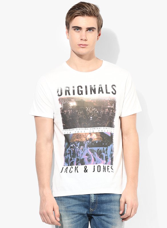 Jabong has Jack & Jones White Printed Round Neck T-Shirt for Rs.995.00 with Free Shipping