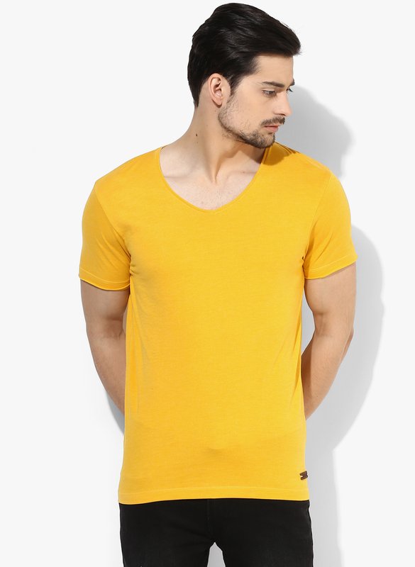 Jabong has Jack & Jones Yellow Solid V Neck T-Shirt for Rs.795.00 with Free Shipping