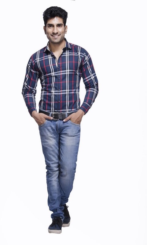 Jads Men's Checkered Casual Blue, Black, Red, White Shirt