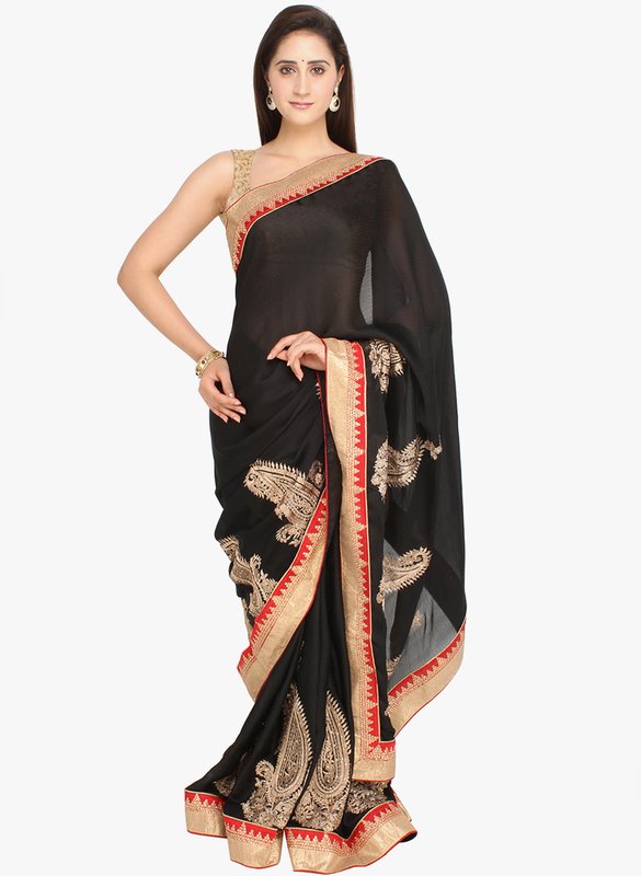 Jabong has Jashn Black Embroidered Saree for Rs.3,999.00 with Free Shipping