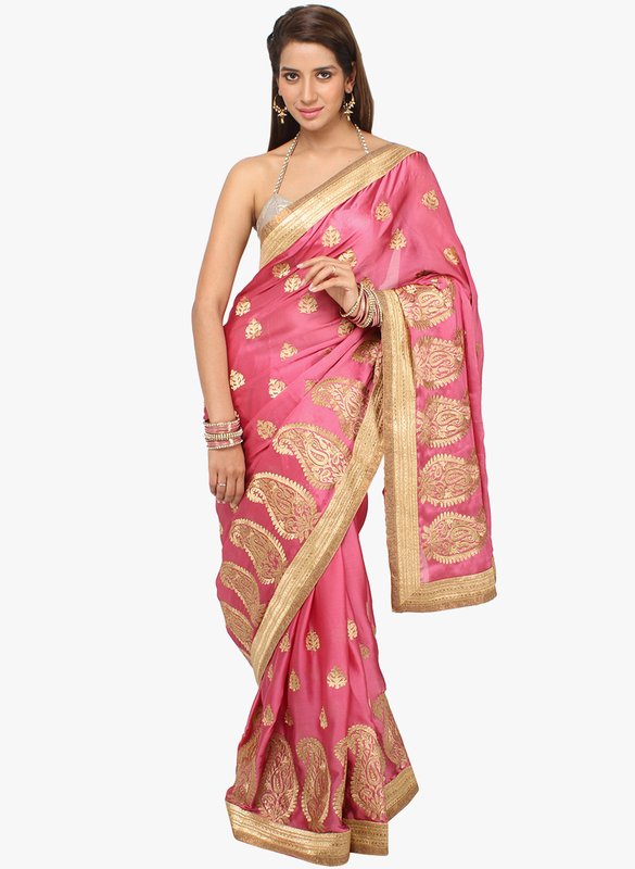 Jabong has Jashn Pink Embroidered Saree for Rs.4,999.00 with Free Shipping