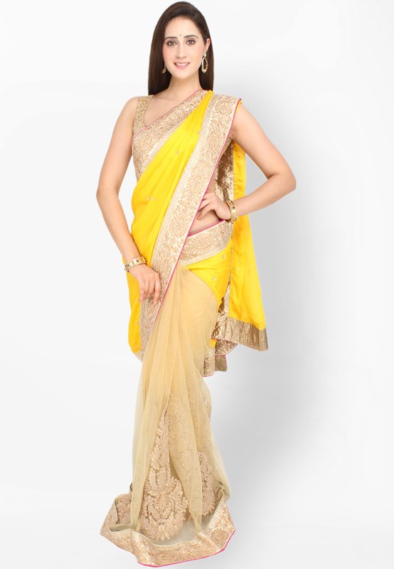 Jabong has Jashn Yellow Embroidered Saree for Rs.8,799.00 with Free Shipping
