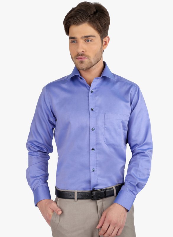 Jhampstead Blue Solid Regular Fit Formal Shirt