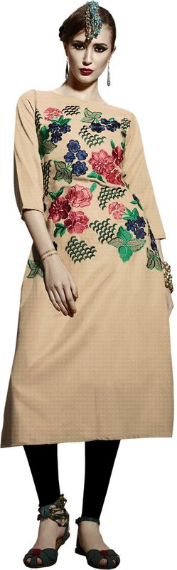 Jiya Party, Festive Self Design, Embroidered Women's Kurti(Beige)