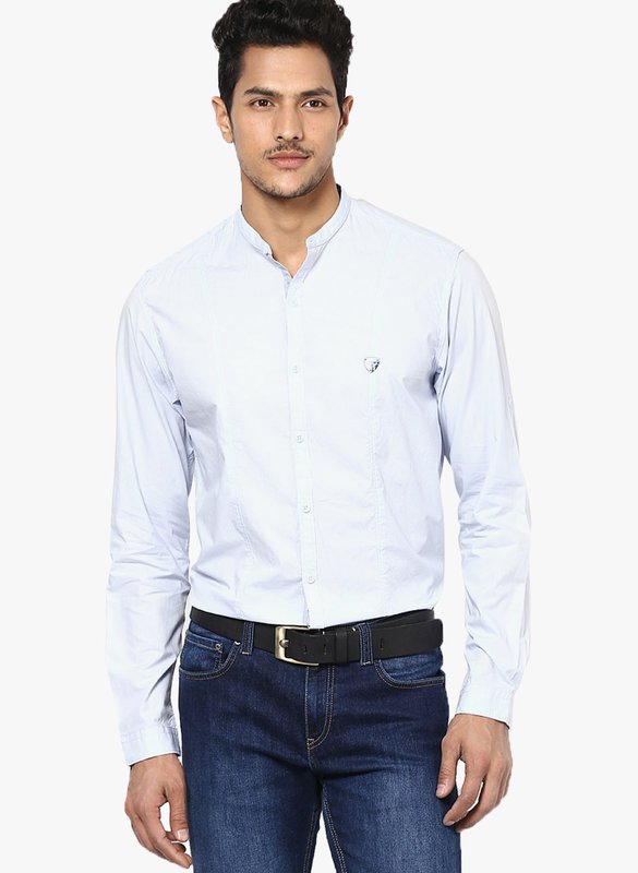 John Players Light Blue Slim Fit Casual Shirt