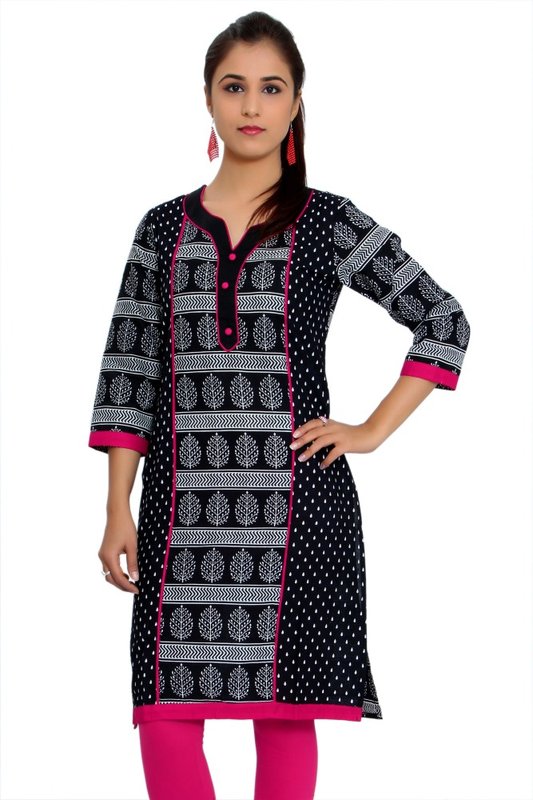 JPF Kurtis Casual Printed Women's Kurti(Black, Pink)