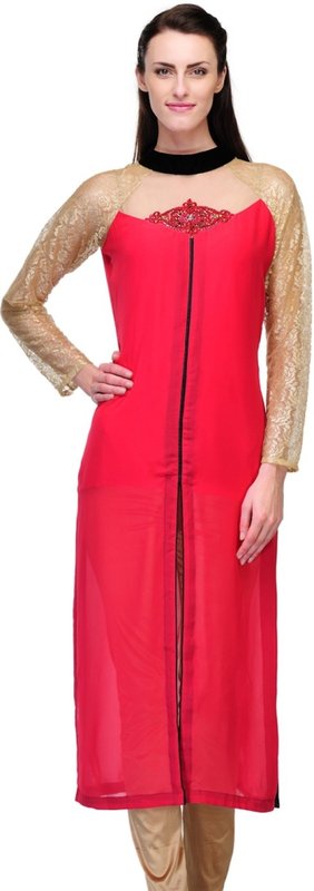 Flipkart has Just Wow Wedding, Party Embellished, Embroidered Women's Kurti(Red, Gold, Black) for Rs.3,999.00 - Rs.2,575.00 (Instant Discount) = Rs.1,424.00 with Free Shipping