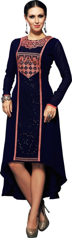 Khoobee Party, Festive Embroidered Women's Kurti(Dark Blue)