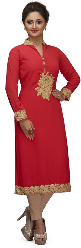 Khoobee Party, Festive Embroidered Women's Kurti(Red)