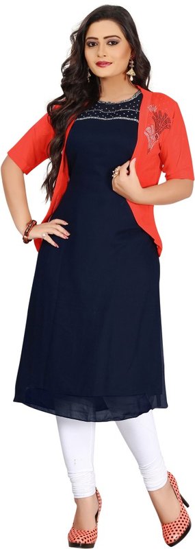 Khushali Party, Festive Self Design, Embellished Women's Kurti(Blue, Orange)