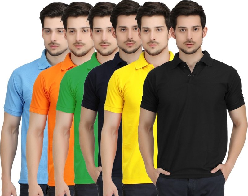 Krazy Katz Solid Men's Polo Neck Multicolor T-Shirt(Pack of 6)