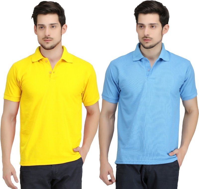 Krazy Katz Solid Men's Polo Neck Yellow, Light Blue T-Shirt(Pack of 2)