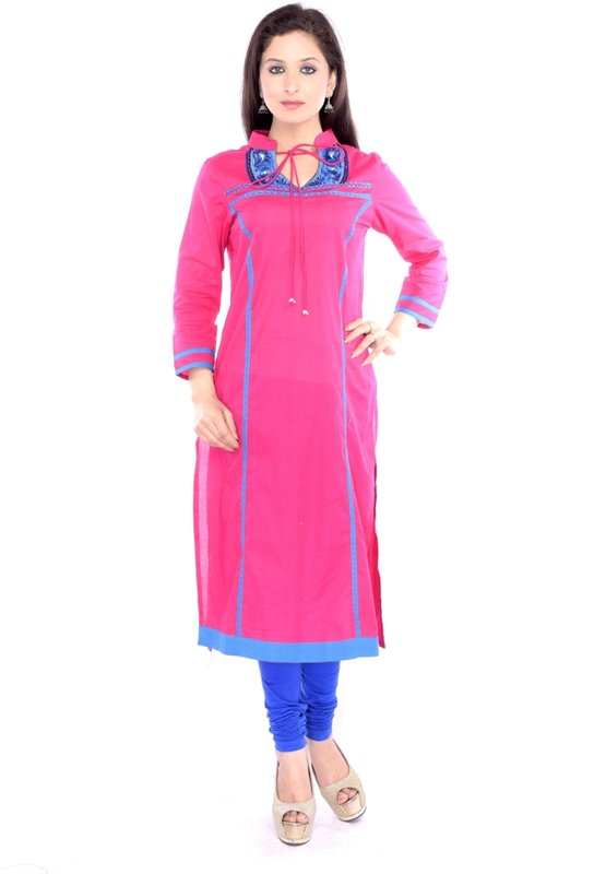 Kurtis By Menika Casual Embroidered Women's Kurti(Pink)