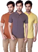 LanosUC Solid Men's Polo Neck Brown, Grey, Red T-Shirt(Pack ....