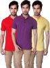 LanosUC Solid Men's Polo Neck Red, Purple, Yellow T-Shirt(Pack of 3)