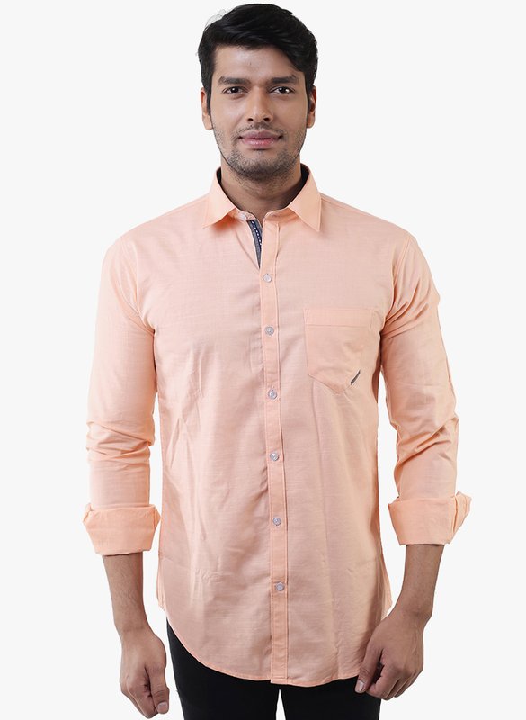 Jabong has Lee Marc Orange Solid Regular Fit Casual Shirt for Rs.999.00 - Rs.400.00 (Instant Discount) = Rs.599.00 with Free Shipping