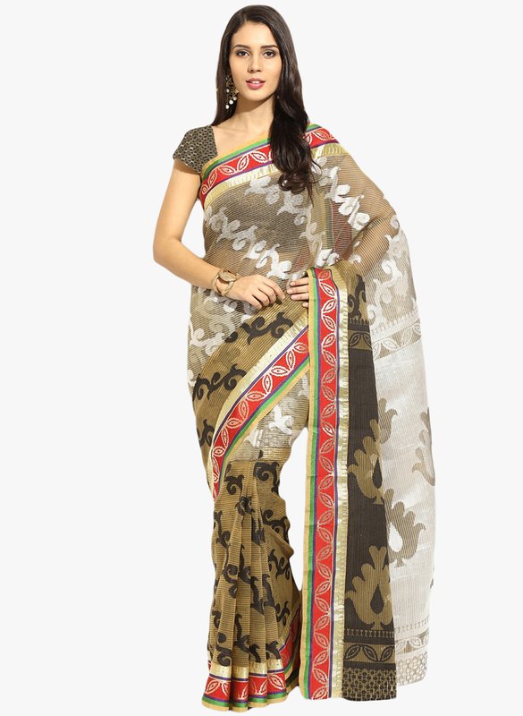 Lookslady Beige Printed Saree