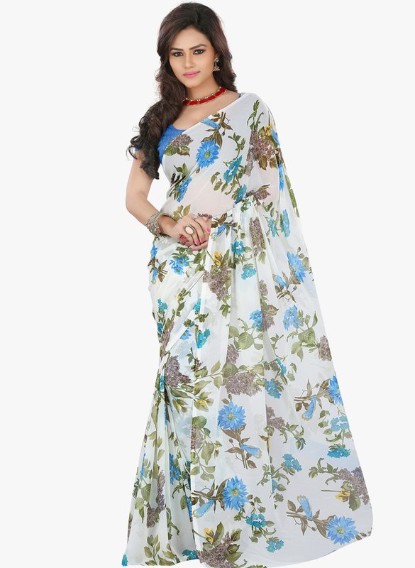 Lookslady Blue Printed Saree