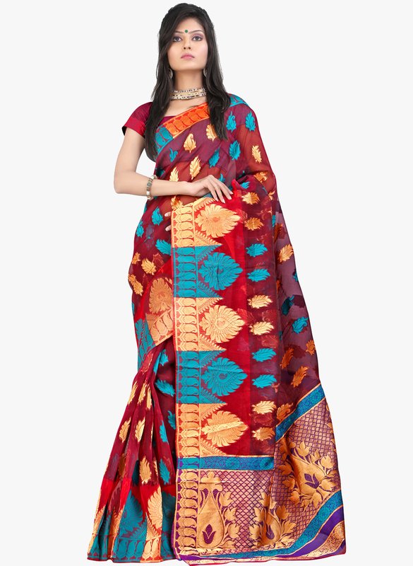 Lookslady Lookslady Maroon & Purple Banarasi Silk Saree