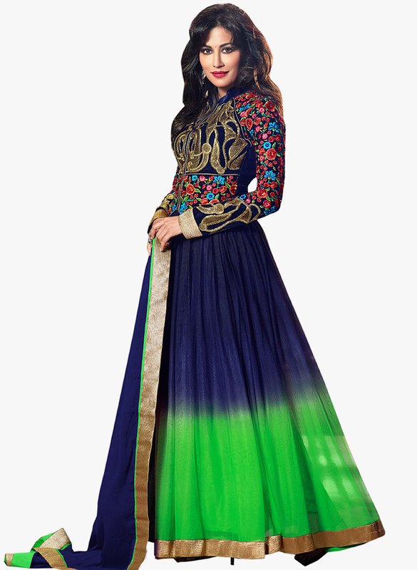 Jabong has Lookslady Navy Blue Embroidered Dress Material for Rs.13,263.00 with Free Shipping