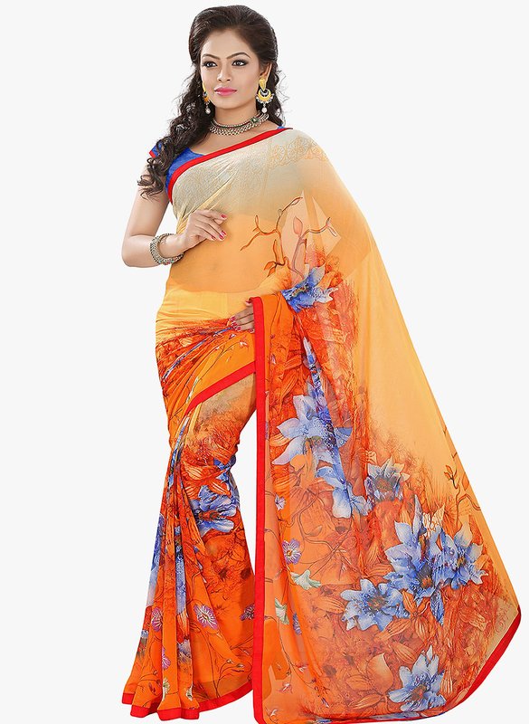 Jabong has Lookslady Orange Printed Saree for Rs.1,399.00 with Free Shipping